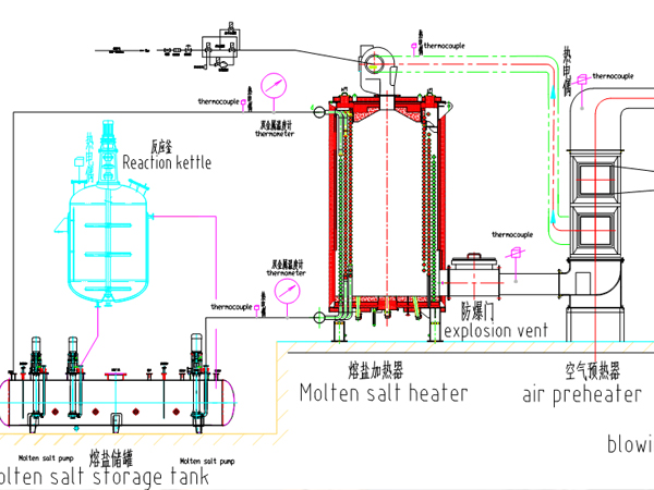 燃氣熔鹽爐是以天然氣為燃料,以熔鹽為熱載體,利用熔鹽泵強制液相循環,將熱能輸送給用熱設備,繼而返回重···